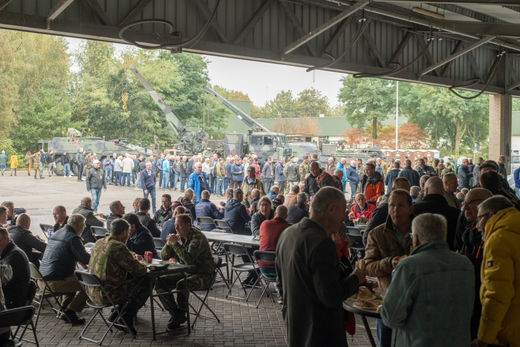 De reünie was groter dan normaal omdat het gehele regiment was uitgenodigd en de dag niet specifiek bedoeld was voor een bepaalde afdeling of jaarlichting. Er was ruim 450 man aanwezig en dat het op de kazerne in Oirschot plaatsvond was extra speciaal. Zo stonden er voertuigen opgesteld – van oud naar nieuw – en er was de gelegenheid om in de nieuwste voertuigen rond te rijden. Het allermooiste vond ik het enthousiasme van de reünisten om hun kameraden weer te zien. Herkenning en blijdschap viel af te lezen op alle gezichten. Hoewel er genoeg activiteiten te doen waren, stond men vooral met elkaar bij te praten. Zeker na zo’n Corona periode waarin mensen elkaar lang niet hebben gezien is het bijwonen van een reünie extra bijzonder.